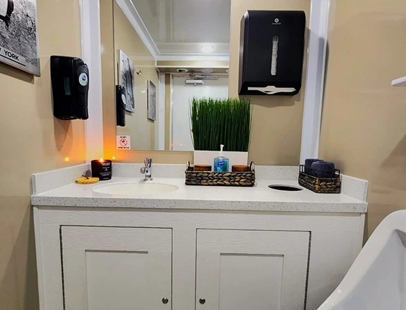 Unlike regular porta-potties, luxury trailers have flushing toilets, running water sinks and odor control systems that keep everything fresh and hygienic.