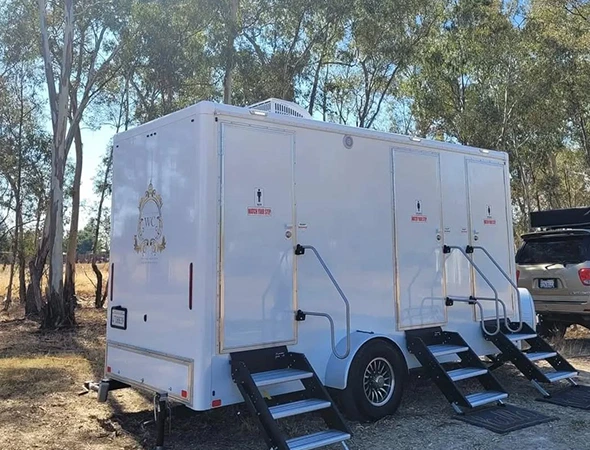 Experience elegance with our high-end restroom trailers, featuring climate control, ambient lighting, and premium finishes for upscale events.