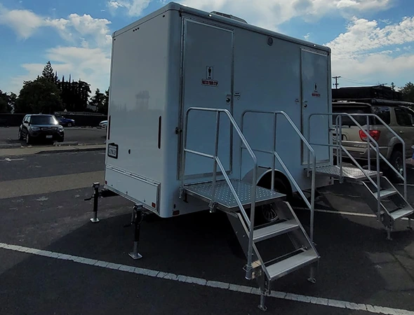 Spacious mobile trailers offering climate control, multiple stalls, soap dispensers and professional setup. Perfect for large gatherings, festivals and corporate events in Napa.