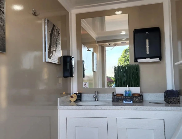 Give your guests more than ordinary restroom facilities. That’s why our VIP luxury restroom trailers in Napa are designed with comfort, style and reliability in mind. Each trailer includes flushing toilets, running water sinks, mirrors, soft lighting and climate control to keep everyone comfortable no matter the weather.