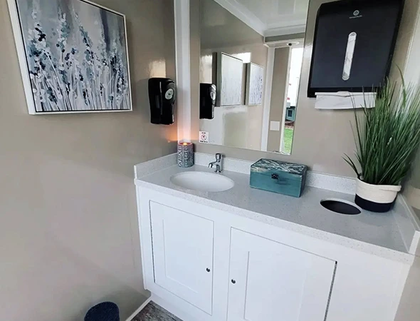 Our luxury portable restrooms in Penryn offer comfort, cleanliness and style with modern amenities, perfect for weddings, festivals and upscale corporate events.